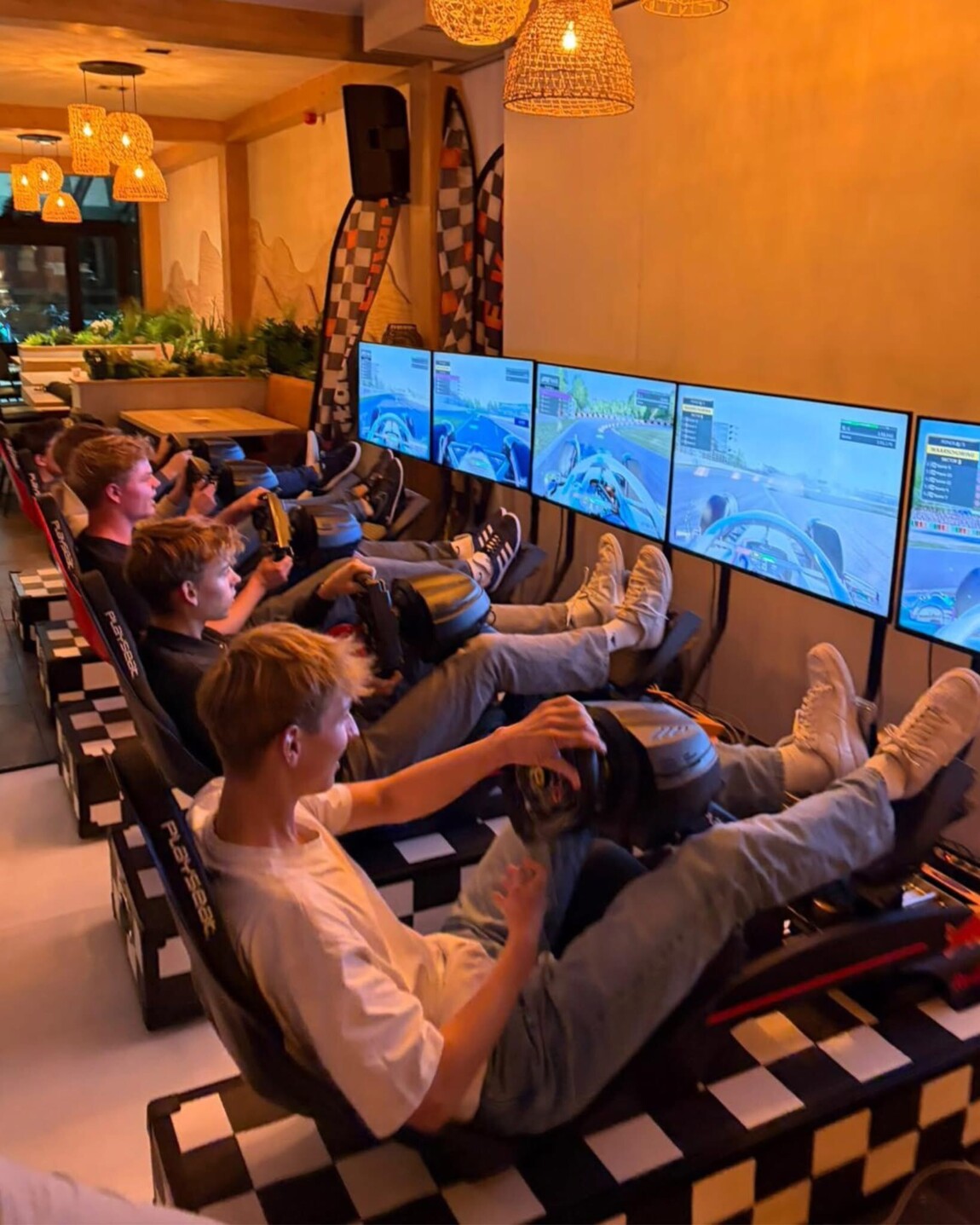 Onze mannen leefden zich uit bij Het Schwarzwald in Rijssen: boogschieten, luchtdrukschieten, escape room, en scheuren in de F1-simulator alsof ze zelf in de RB20 zaten. We sloten af met een warm en koud buffet.